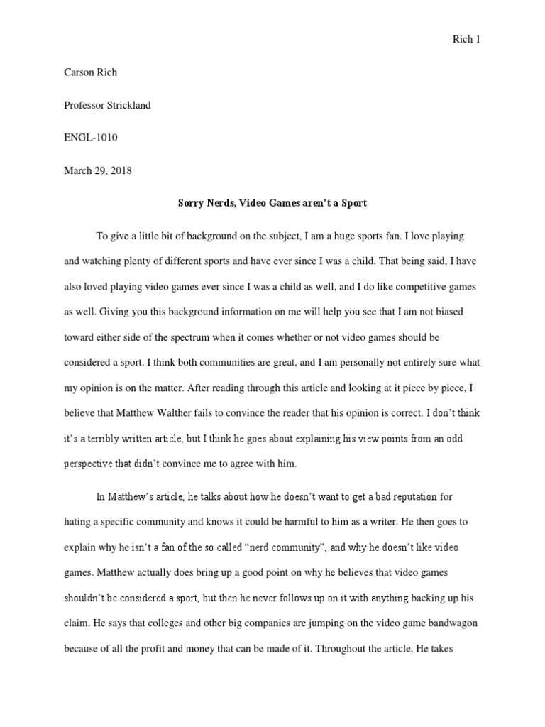 Should Video Games Be Considered A Sport Argumentative Essay